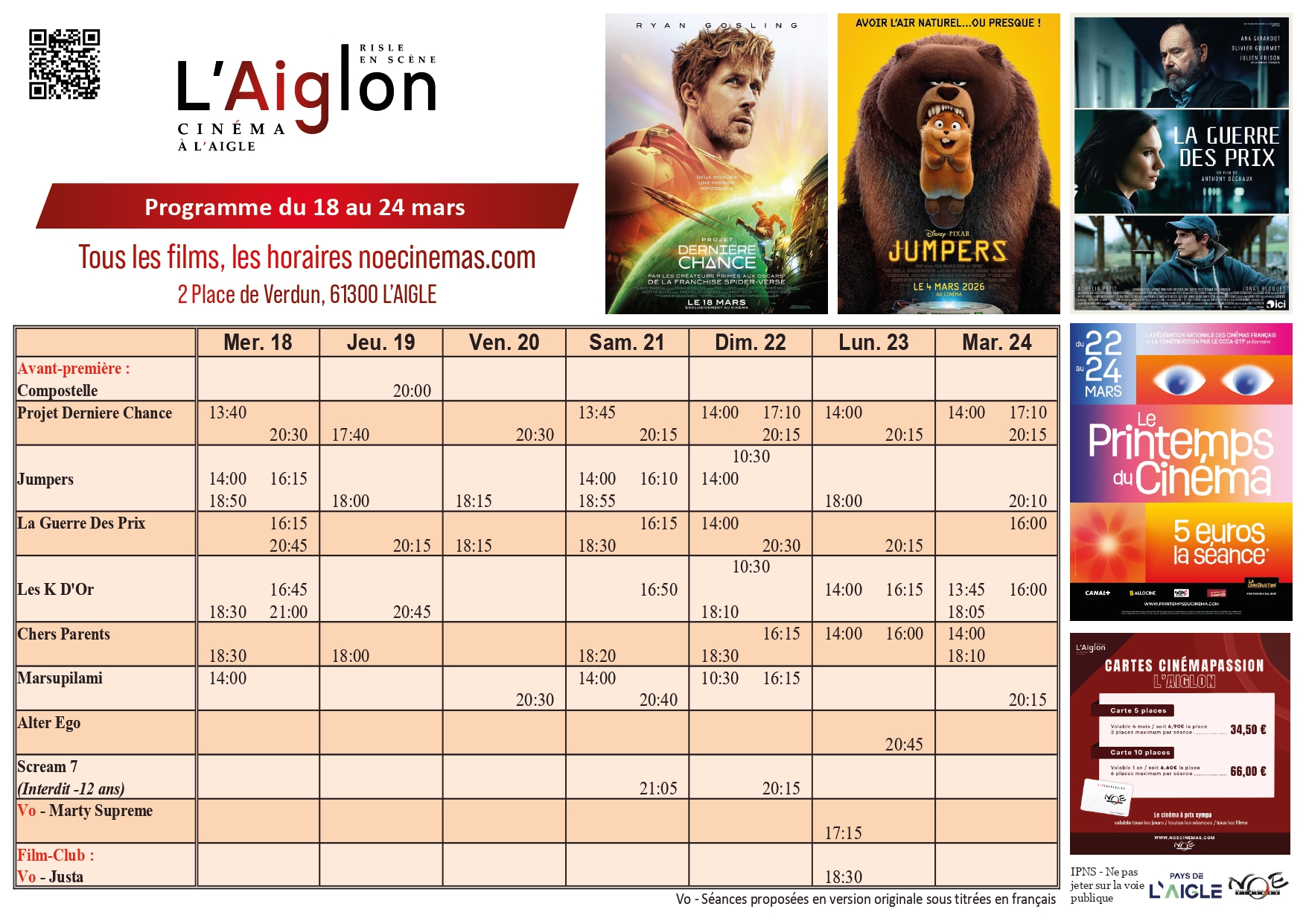 Réservez vos places ou vos cartes